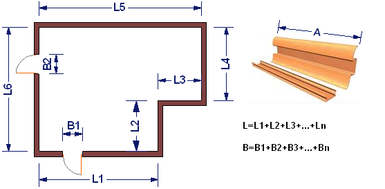 Схема расчета необходимого количества плинтуса.