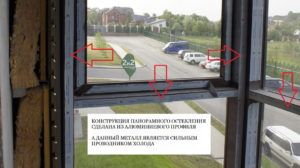 - В холодный период на стыках откосов с панорамными окнами может возникнуть изморозь, запотевают сами стёкла. Спасти от этого в силах только щелевые конвекторы, способные обогреть стекло на всей площади панорамы, или полное утепление балкона.
