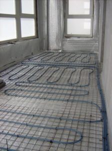 - раскатывание по поверхности пола и крепление сетки водяного или электрического пола;