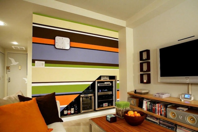 Вертикальные полосы делают помещение выше, горизонтальные — просторнее, но ниже. Если высота стены больше ее длины, вертикальную полоску использовать ни в коем случае нельзя. Иначе помещение может превратиться в «колодец».