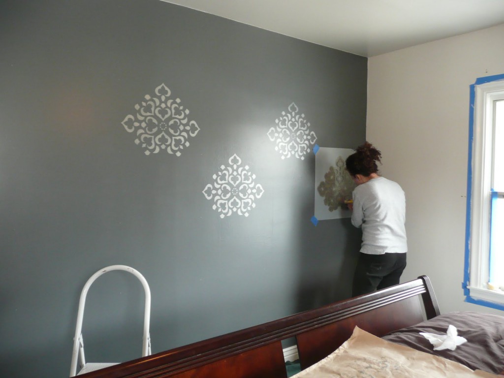 Каких-то особых правил по данному вопросу не существует, однако стоит отметить, что трафаретные узоры будут выглядеть намного выигрышнее на больших открытых плоскостях. Если ваша комната богата свободной, не скрытой мебелью стеной, то начать декорировать интерьер можно прямо с нее. Чтобы узор не смотрелся сиротливо, не делайте его чересчур мелким.