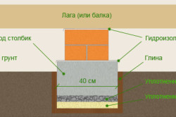 Установка столбиков выполняется на начальной стадии чернового пола. Данная конструкция имеет еще название «столбчатый фундамент». Технология такая: