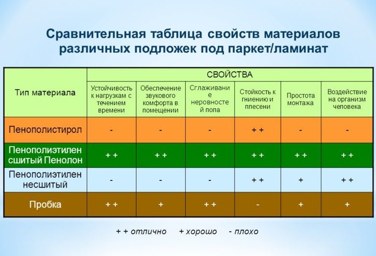 Сравнительная таблица подложек под ламинат.
