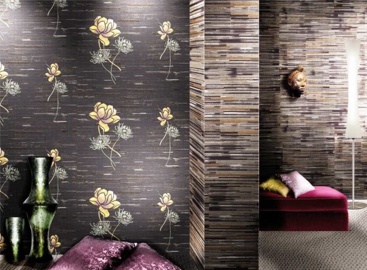 Декоративная отделка стен должна проводиться только после тщательного выравнивания поверхностей. При выравнивании поверхностей не всегда удается грамотно замаскировать недостатки, которые могут становиться заметным уже в процессе работы. Скрыть недостатки можно с помощью обоев темных оттенков. На фоне такого оформления будут менее заметны вмятины и выступы.