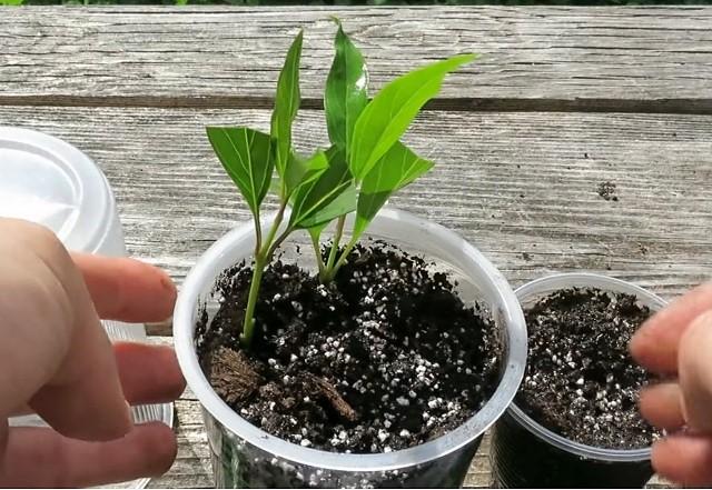 Для одного черенка достаточно 2-ух междоузлий. Под нижним остается около половины сантиметра ствола. Нижние листья с ветви срываются, а от верхних отрезают половинки.
