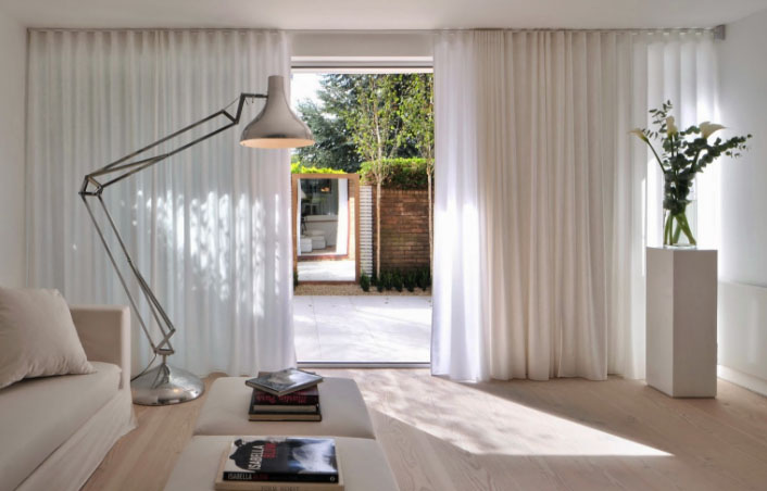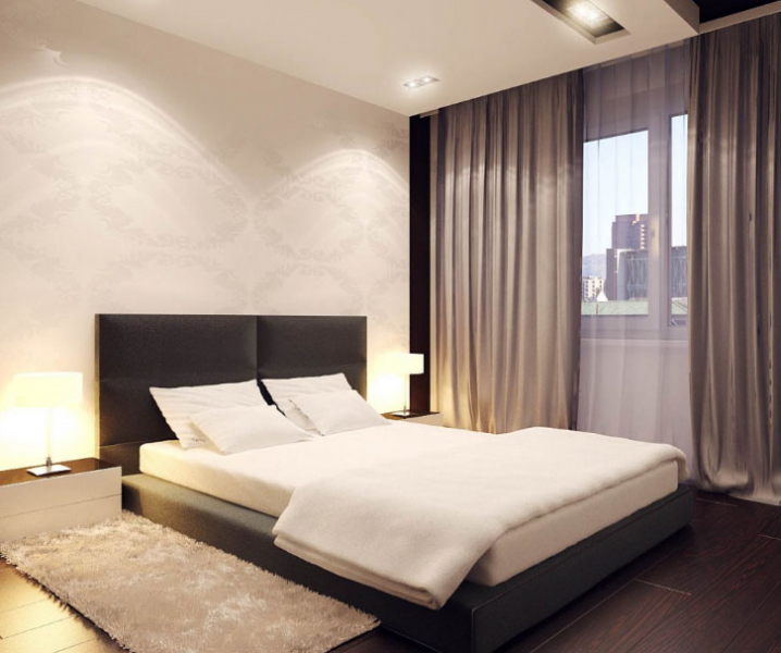 Стиль минимализма, несмотря на свою простоту, достаточно дорогой, поэтому синтетика не приветствуется. Лучше всего для такого интерьер подойдет лен, хлопок, органза, все виды тюля. Соблюдается плотность – через ткани, при полном закрытии не должно пробиваться света, и нагревания ткани не происходит.
