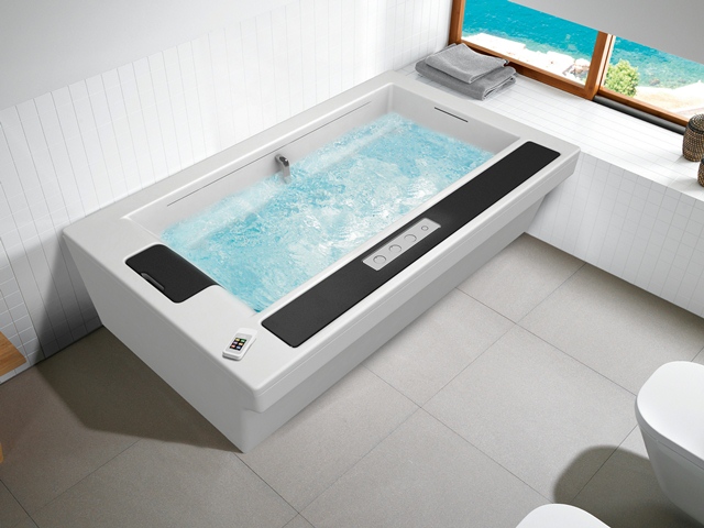 Двухместная ванна со всеми удобствами славится широким функционалом и соответствующей стоимостью. Здесь производитель предусмотрел функции многоцветной подсветки, гидромассажа, озонирования жидкости. А управлять всеми этими возможностями можно с помощью дистанционного пульта.