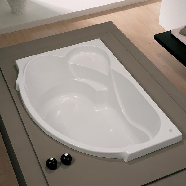 Прекрасная асимметричная модель устанавливается возле стены. С ней в комплекте обязательно идут подлокотники, каркас и слив-перелив. Если появится необходимость, в ванну можно добавить аэромассаж и подводную подсветку. Также тут предусмотрено нескользящее дно.