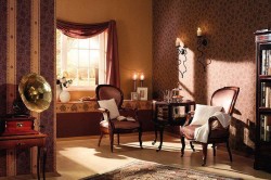 А вот с черно-белыми фото придется поработать. Дело в том, что в комнате, оформленной в данном стиле, современные, обработанные в черно-белой цветовой гамме фотографии смотреться не будут. А вот городские пейзажи, где есть старые здания, копии фотографий, отражающих общественную жизнь той или иной эпохи, изображения прославившихся когда-то людей — да.