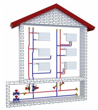 - В жилом многоквартирном доме установлен коллективный счетчик на вводе, плата начисляется во время отопительного периода. В квартирах могут стоять индивидуальные приборы, но их показания не учитываются, пока теплосчетчики не регистрируют обогрев всех без исключения комнат.