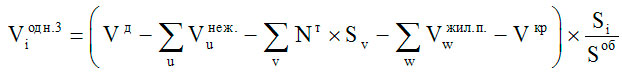 где Vд — это количество использованной энергии для всего дома (по показаниям общедомового счетчика), Sоб — общая площадь квартир и нежилых мест, находящихся в этом доме, Sд — общая площадь всех помещений дома, Si — общая площадь жилья, для которого проводятся вычисления.