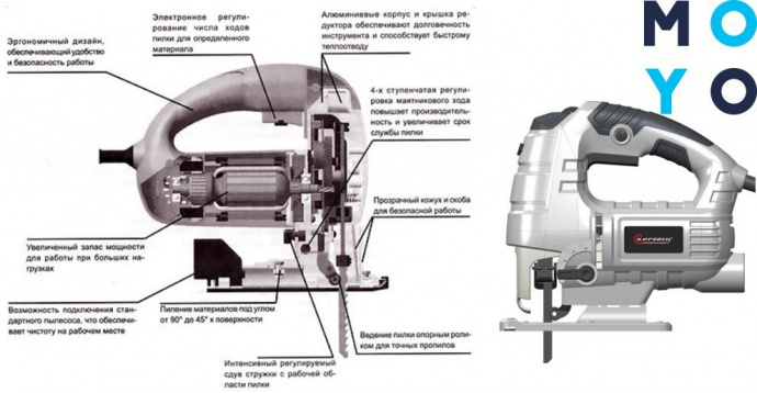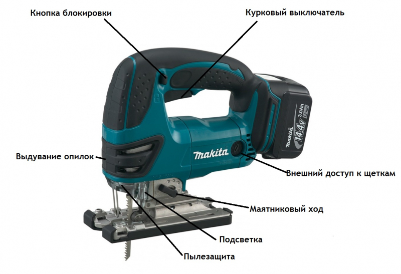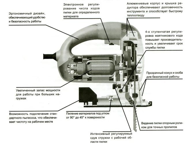 Независимо от модели, электрический лобзик имеет: