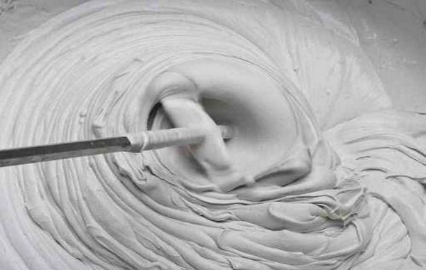 Если объяснять подробнее, то нужно взять 2-3 литра известковой массы, добавить в него один килограмм гипса и перемешать. Гипс перед добавлением нужно развести в воде, до умеренно-густой консистенции.
