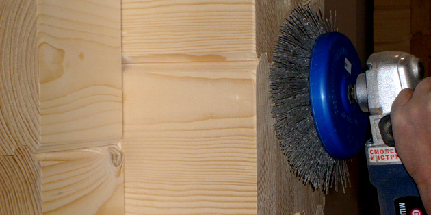 В процессе шлифовки сруба потребуется очень часто менять насадки, потому что смола и древесная пыль стирает их. Для того, чтобы очистить насадку от скопившихся в ней частей дерева, воспользуйтесь стальной щеткой, но перед этим обработайте ее с помощью уайт-спирта. Учтите, работать такая насадка будет хуже, и сотрется быстрее.