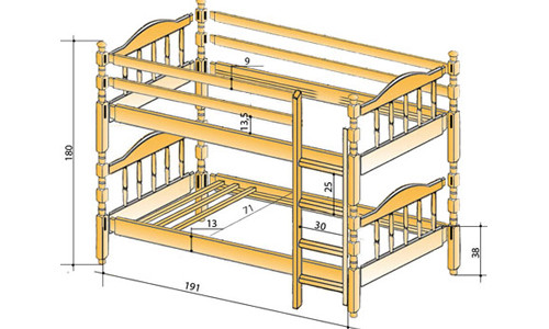 В современных квартирах комнаты значительно отличаются по размерам, поэтому для детской зачастую выбирается не самое большое помещение. Оптимальный вариант для увеличения свободного пространства изготовленная двухъярусная кровать своими руками, чертежи и схемы которой будут представлены ниже. Единственный недостаток этого варианта, это возраст ребенка, так как в подростковом периоде ему буде неудобно на втором этаже. Заменив нижнюю кровать диваном, можно создать комфортные условия для сна даже ребенку постарше.