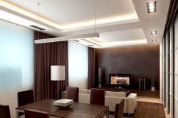 Стоит отметить, что желательная высота подиумной конструкции – не более 15 см. Подиум – это ещё один отличный вариант скрыть систему коммуникаций. В разноуровневых потолках можно провести всю проводку, так, что провода будут далеки и невидимы. У подиума есть и небольшой минус. Для людей старшего возраста и малышей такой вариант может стать неудобным. Особенно в ночное время суток. Можно покрыть потолок глянцевыми материалами и он заметно увеличит площадь над зонами.