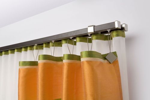 если сравнивать все способы крепления штор, то этот – самый дорогостоящий; не подходит для тонких невесомых тканей типа тюля, а также для рулонных и римских штор.