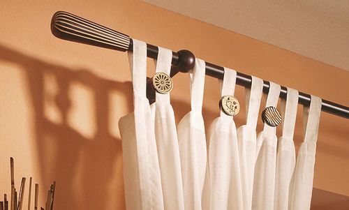 Удобный и эстетически привлекательный способ прикрепления штор. Фурнитура часто продается вместе с карнизом.