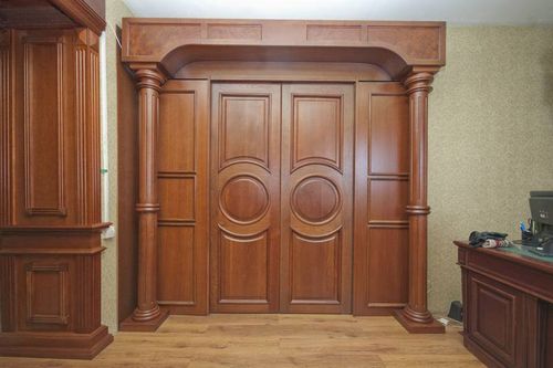 2. Комбинированные двери, в которых каркас полотна изготавливается из массива древесины, а филенки, не являющиеся несущими деталями конструкции, производятся из МДФ-плит и облицовываются натуральным шпоном той же породы.