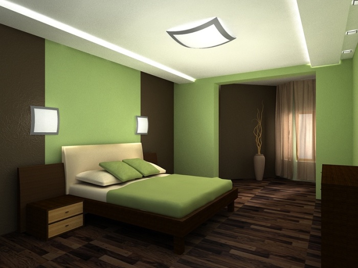 - Природное сочетание с коричневым может быть использовано в помещениях любого функционального назначения, даже в детских спальнях. Темные тона придадут комнате строгость, светлые – легкость и позитив.