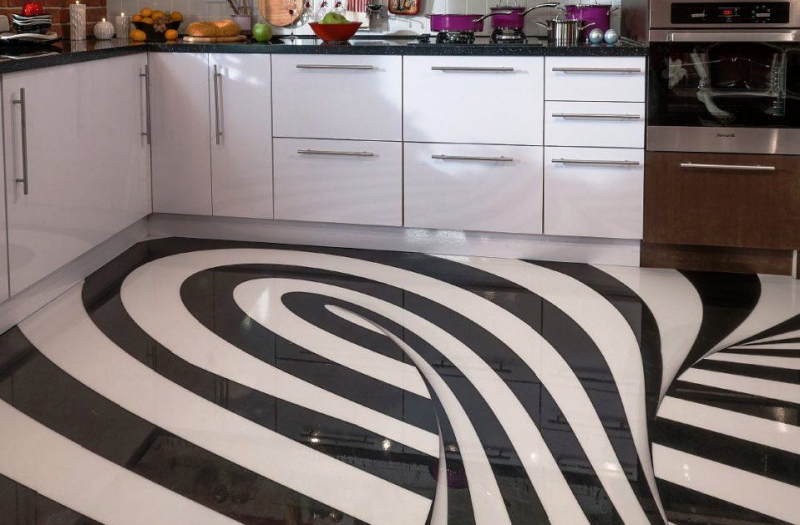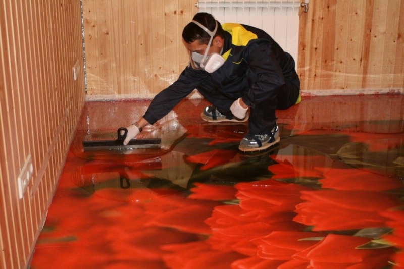 - наливные полы с 3D эффектом – это самый впечатляющий способ декорирования наливных полов. Таким образом получают объемные и максимально реалистичные изображения, которые полностью меняют восприятие помещения. Эффект достигается благодаря использованию картинки с подходящим изображением, поверх которой наливается прозрачное полимерное покрытие.