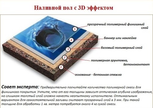 Схема укладки наливного трехмерного пола.