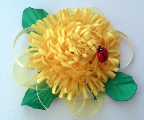 Так же, для декора, я сделал два желтых цветка из круглых, плоских лепестков канзаши. По одному на каждый подхват.
