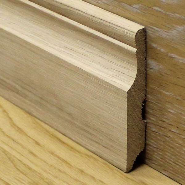 Плинтус, выполненный из МДФ, — это золотая середина в плане цены и качества. По свойствам материал почти не уступает дереву, а по некоторым параметрам даже опережает его, и при этом стоит значительно дешевле. МДФ-плиты изготавливают из древесных опилок, которые прессуются под воздействием высокой температуры и давления вместе с карбамидными смолами. Получается прочный и не опасный для здоровья материал, который не выделяет в воздух вредные вещества. Сверху плита может быть окрашенной, ламинированной пленкой или шпонированной тонким слоем натуральной древесины, поэтому внешний вид очень разнообразный.