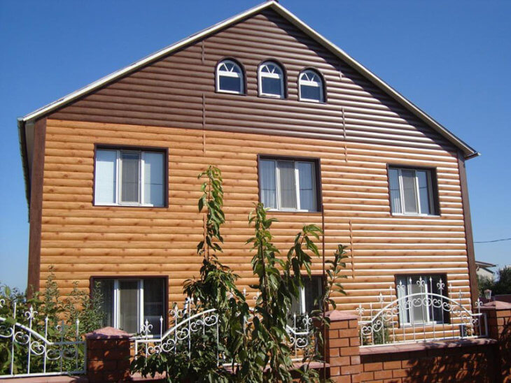 С помощью винилового материала можно создать оригинальный экстерьер дома, преобразить постройку и сделать ее максимально привлекательной. Внешне покрытие будет схожим с натуральным бревном, при этом сохранит эксплуатационные свойства. Сайдинг из ПВХ-панелей будет достаточно надежным, устойчивым к механическим нагрузкам и внешним влияниям. Главным достоинством станет устойчивость материала к коррозии и грызунам.