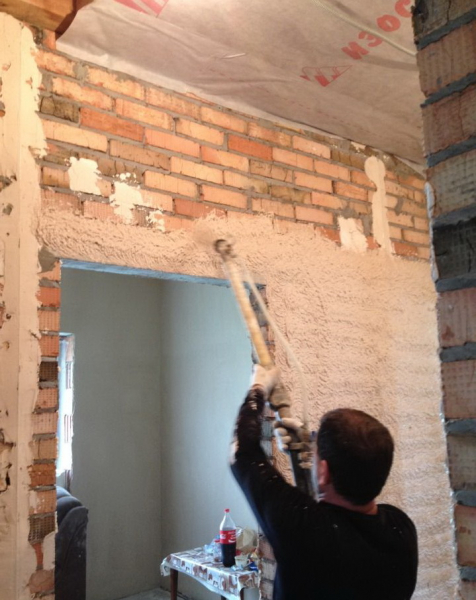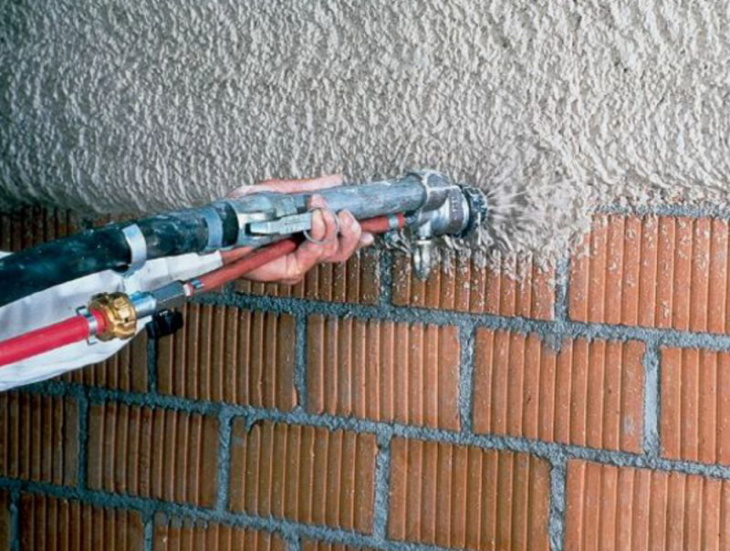 - Качество работ выше. Так как смесь подается под давлением, следовательно, улучшается сцепление состава со стеной.