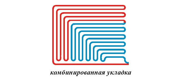 Комбинирование этих методов целесообразно, если помещение имеет несколько холодных, наружных стен. В этом случае подразумевается укладка с петлями, крутыми изгибами и прямыми углами. В этих схемах подающий контур укладывается по периметру наружных стен, обратные трубы уходят вглубь помещения.