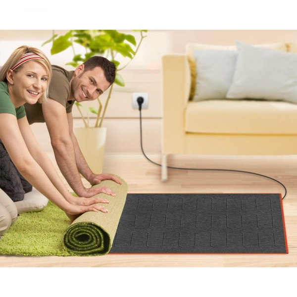 Любая система теплого пола не требует дополнительных затрат на установку, необходимо лишь закрыть площадь отопительного прибора ковром и включить в розетку. Стандартный типоразмер покрытия 180х60 см. На задней панели терморегулятора имеется специальное крепление, чтобы установить его на стене. Такие полы незаменимы, когда необходимо прогреть помещение, которое не использовалось какое-то время.