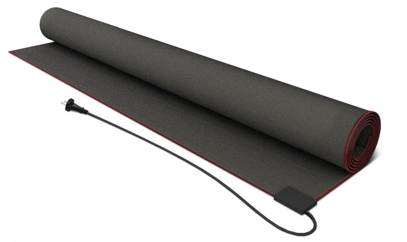 - Простота установки: мат не требует дополнительной фиксации, необходимо просто расстелить на полу, накрыть декоративным материалом и подключить к электросети.
