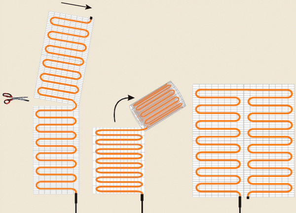 ЭТО ВАЖНО: При необходимости можно разрезать сетку мата и согнуть кабель в нужном направлении, однако резать его нельзя!