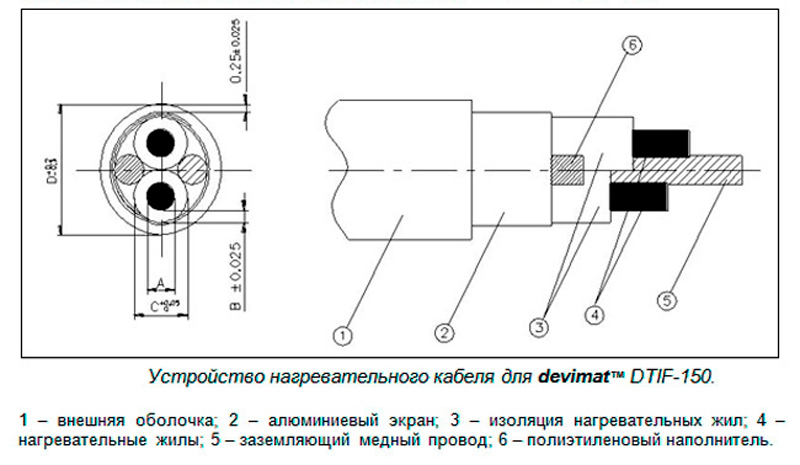 Строение нагревательного кабеля