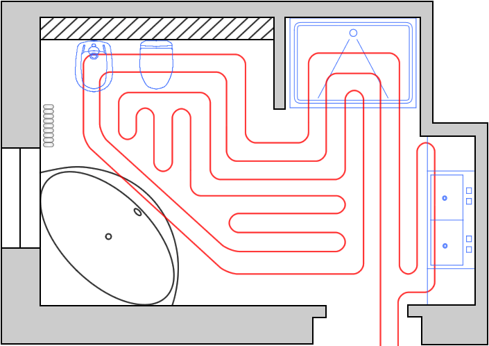 Проект теплого водяного пола в ванной комнате.