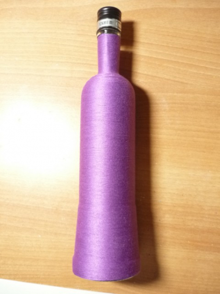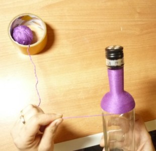 Затем клей ПВА разбавляем с водой в равных пропорциях и замачиваем в растворе кусочек ткани, чтобы пропиталась. Слегка отжав, прикладываем к бутылке, оставив складки в произвольном виде до полного просыхания.
