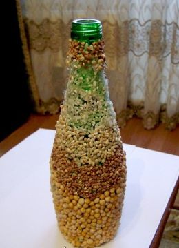 В качестве материала для декупажа используют ракушки, соль, яичную скорлупу, крупы и даже шпатлевку.