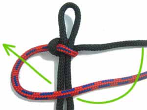 5. Правую стропу пропустить над правой петлей и завести под левую петлю.