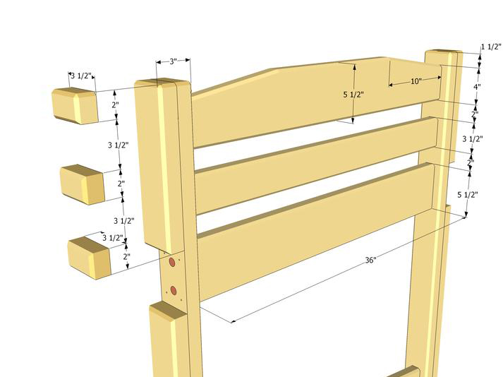 К изголовью нужно установить три рейки с помощью клея и саморезов. Если вы уже задумались над тем, какую форму будет иметь двухъярусная кровать своими руками, то можете придать соответствующий вид изголовью изделия.