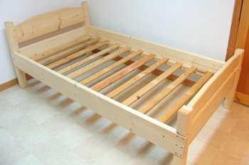 Если нет возможности изготовить кровать из дерева полностью своими силами, то можно приобрести или заказать готовый набор, собрав его дома самостоятельно. В этом нет ничего сложного, поскольку производители мебели, как правило, кладут в комплект подробную инструкцию. К тому же, для сборки понадобится минимальный набор инструментов: ножовка, шуруповёрт или отвёртка, наждачная бумага для шлифования. Такое решение позволит снизить стоимость кровати, но придётся довольствоваться тем, что предлагает производитель.