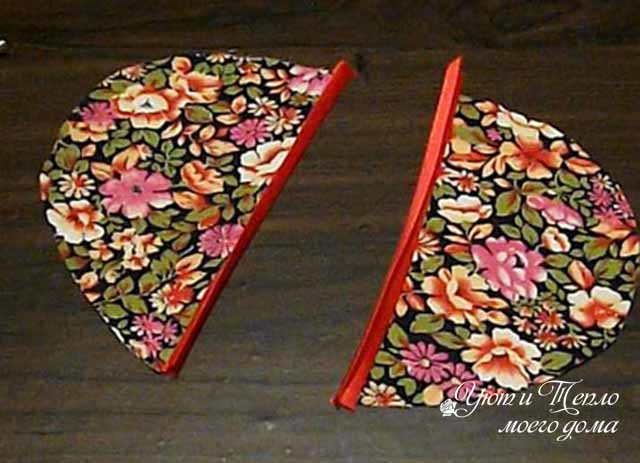 А затем эту заготовку сшиваем с изнаночной частью выкройки, не забывая подложить синтепон.
