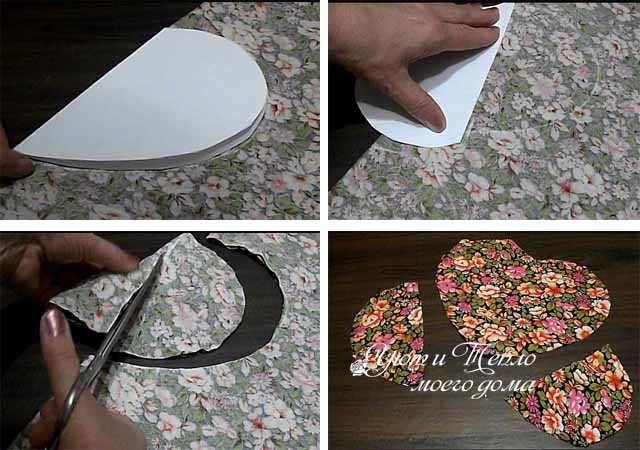 Шаг 4. Вырежьте из флизелина такие же элементы. Проклейте окантовку. Соберите детали так, как показано на картинке и простегайте.