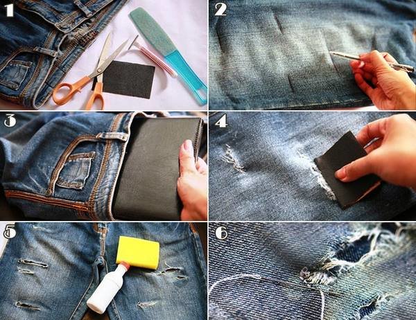 Пошаговая схема, как джинсы сделать рваными, заключается в следующих шагах: