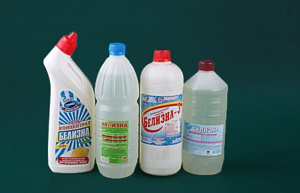 - Жидкий отбеливатель или раствор хлора и губка. С их помощью выделяется порванная поверхность.