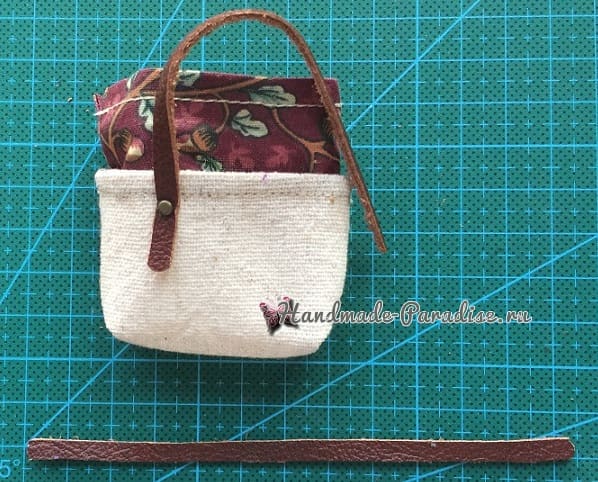 Прикрепляем ручки из тонкой кожаной полоски: