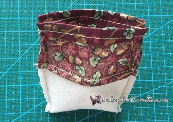 Подворачиваем верхнюю часть мешочка и прокладываем строчки: