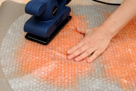 - Фото 7. Накрываем пупыркой и прижимаем, переставляя ладони, чтобы равномерно распределился мыльный раствор.