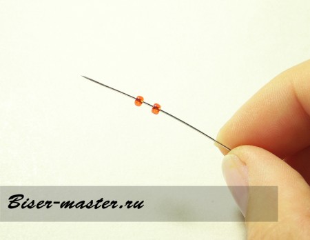 2. Наберите еще одну бисеринку на иглу.