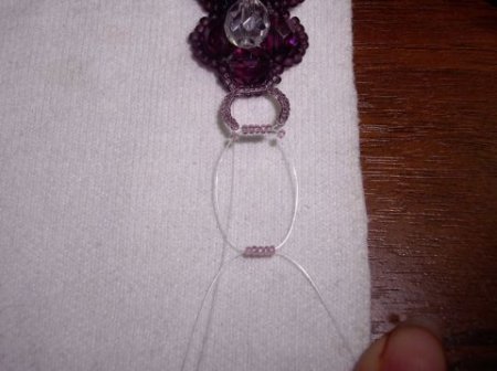 На этот же отрезок нанизываем одну бисеринку, краем проходим в первую бисерину и тщательно затягиваем нить.